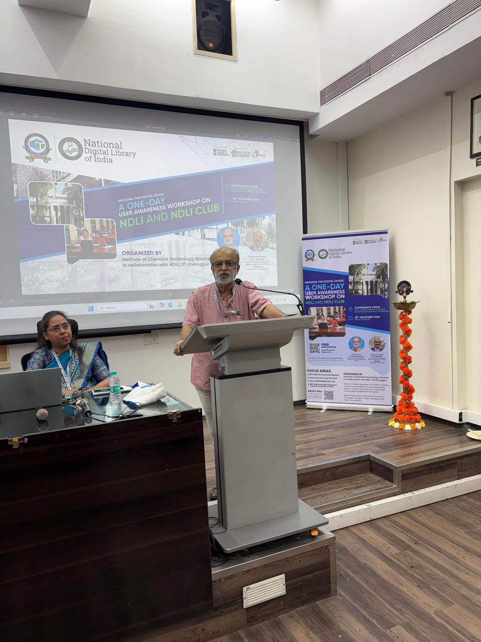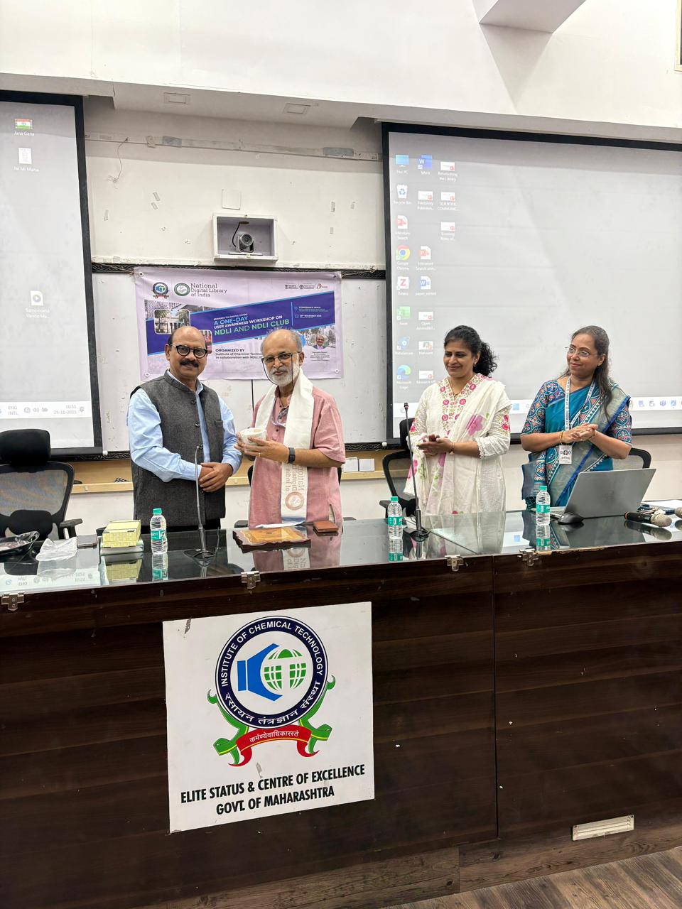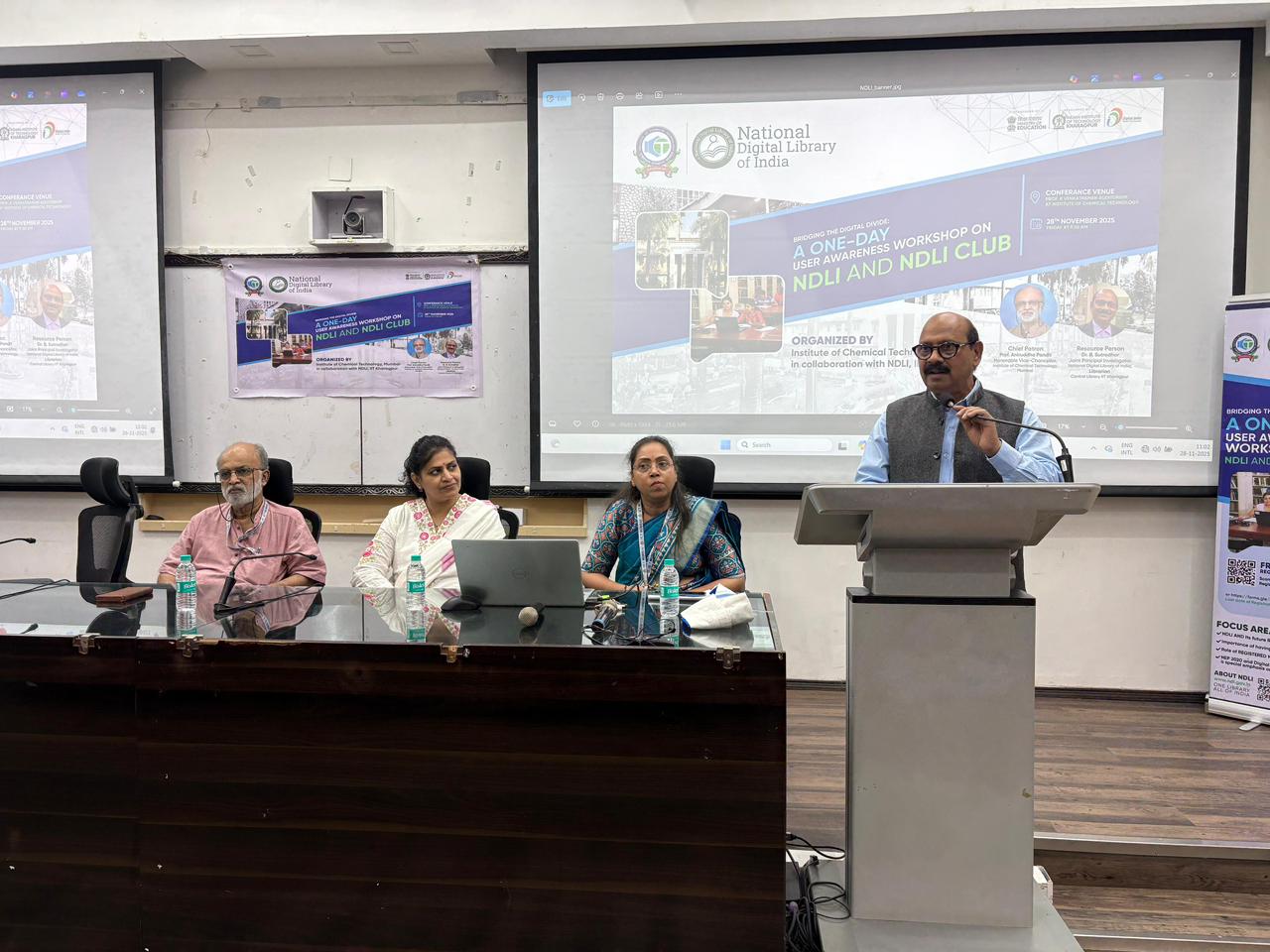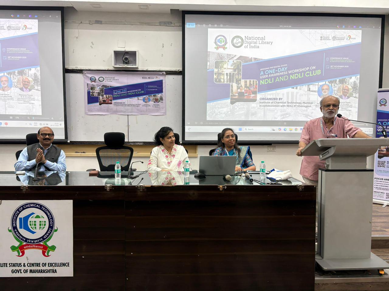 Institute of Chemical Technology Mumbai, in collaboration with the National Digital Library of India (NDLI), successfully organized a One Day Workshop on National Digital Library of India (NDLI) and NDLI Club for University and College Libraries on 28th November 2025. Held at the Prof. K. Venkatraman Auditorium, the workshop aimed to strengthen the digital infrastructure of academic libraries, promote the role of NDLI in higher education, and explore the significance of NDLI Clubs in fostering collaborative learning environments in alignment with NEP 2020.