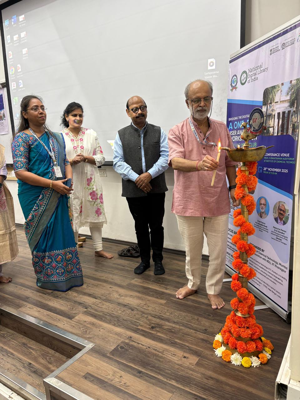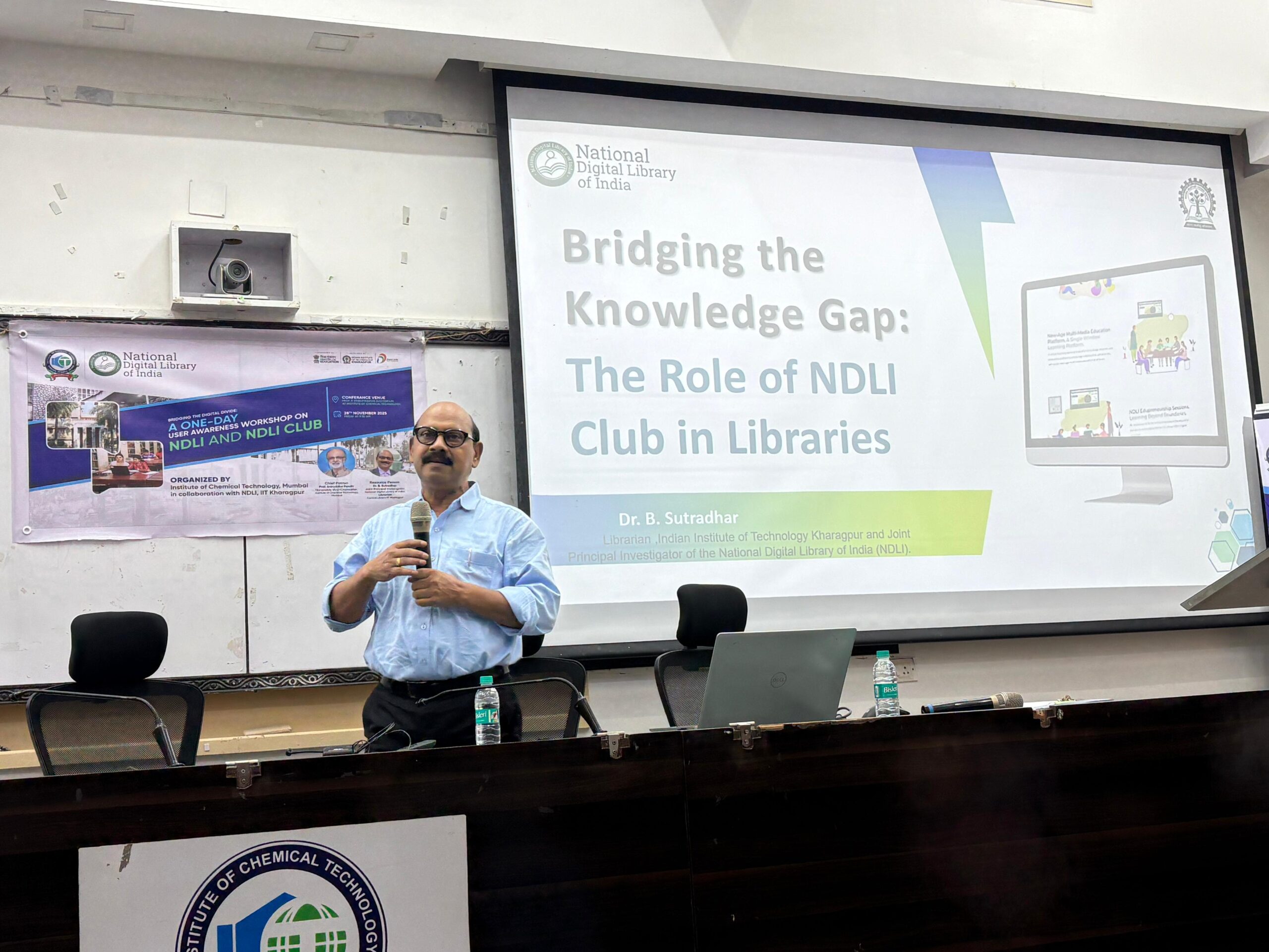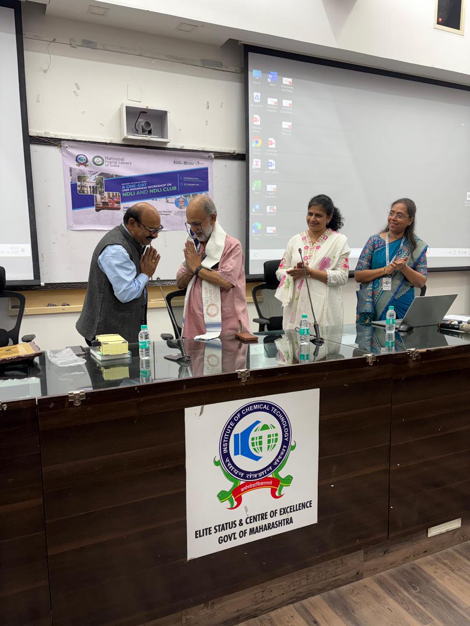 Institute of Chemical Technology Mumbai, in collaboration with the National Digital Library of India (NDLI), successfully organized a One Day Workshop on National Digital Library of India (NDLI) and NDLI Club for University and College Libraries on 28th November 2025. Held at the Prof. K. Venkatraman Auditorium, the workshop aimed to strengthen the digital infrastructure of academic libraries, promote the role of NDLI in higher education, and explore the significance of NDLI Clubs in fostering collaborative learning environments in alignment with NEP 2020.