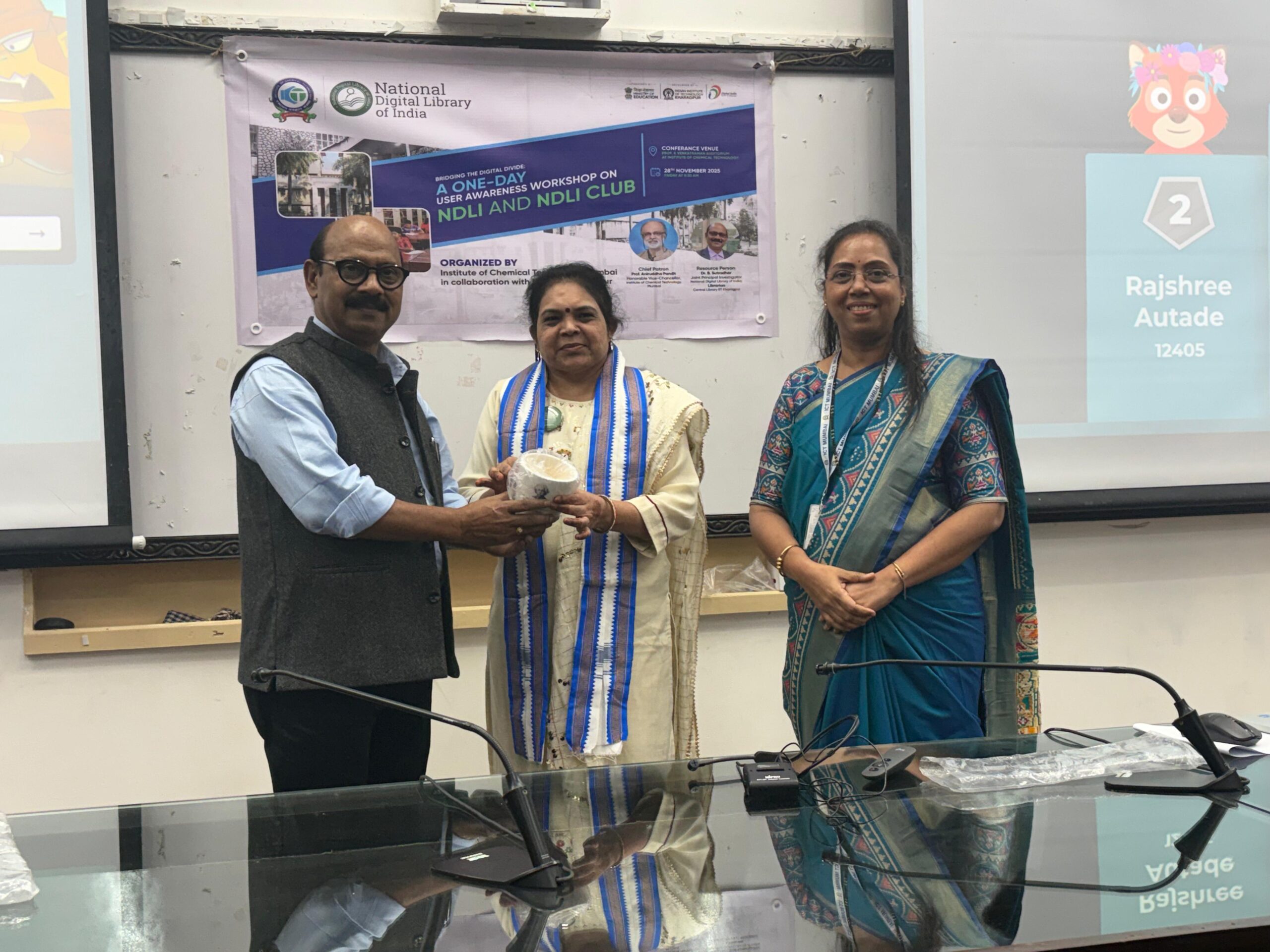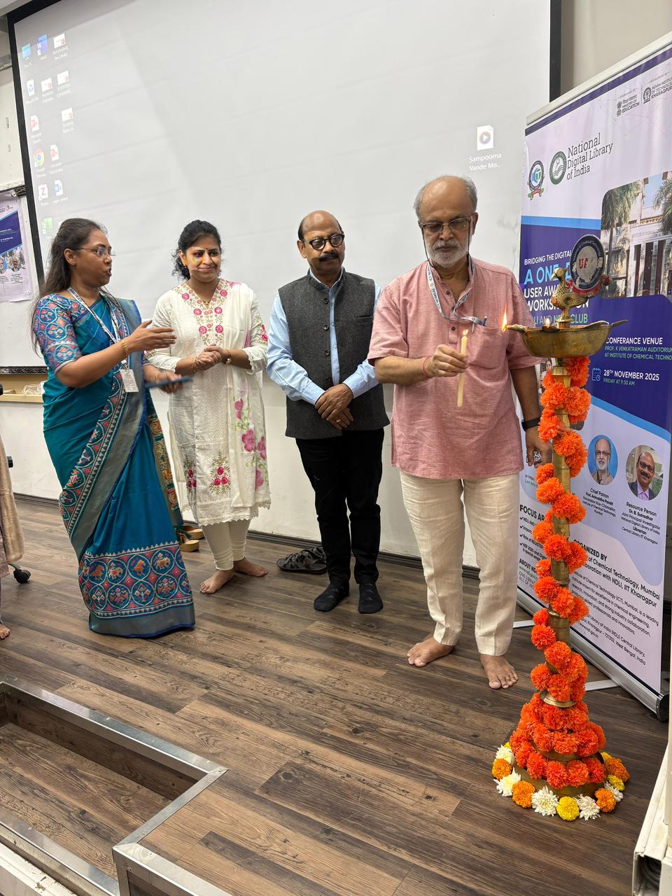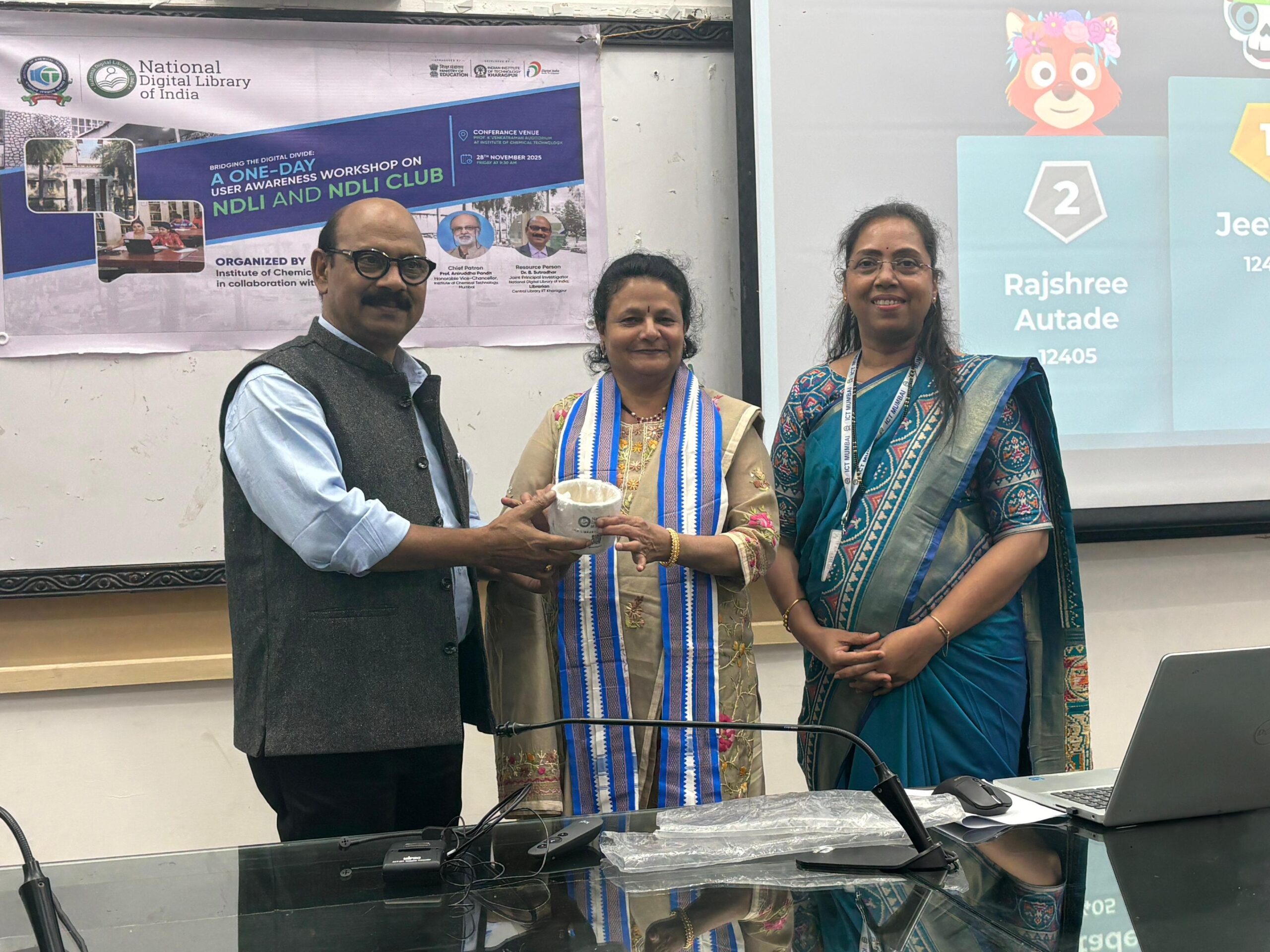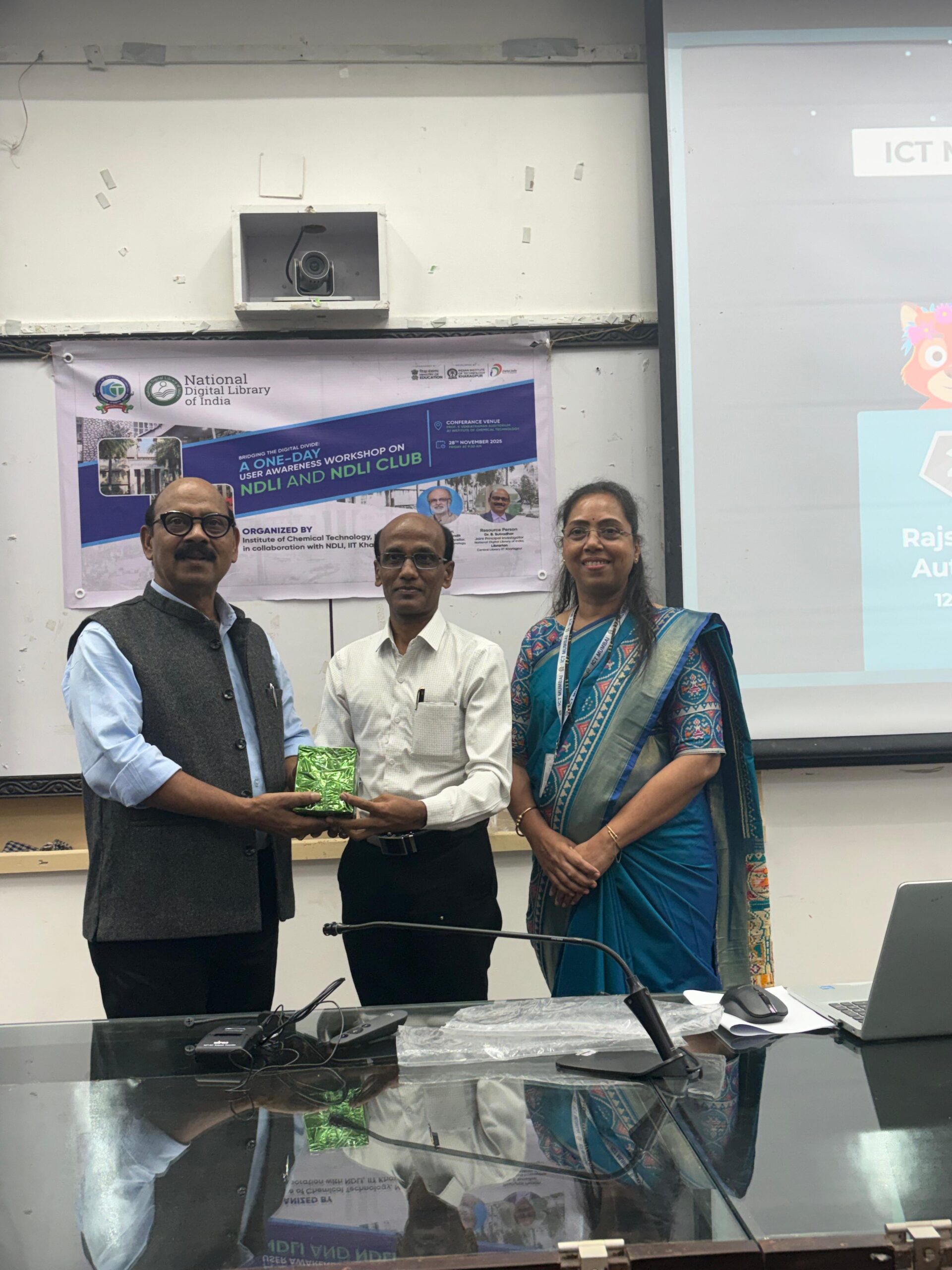 Institute of Chemical Technology Mumbai, in collaboration with the National Digital Library of India (NDLI), successfully organized a One Day Workshop on National Digital Library of India (NDLI) and NDLI Club for University and College Libraries on 28th November 2025. Held at the Prof. K. Venkatraman Auditorium, the workshop aimed to strengthen the digital infrastructure of academic libraries, promote the role of NDLI in higher education, and explore the significance of NDLI Clubs in fostering collaborative learning environments in alignment with NEP 2020.